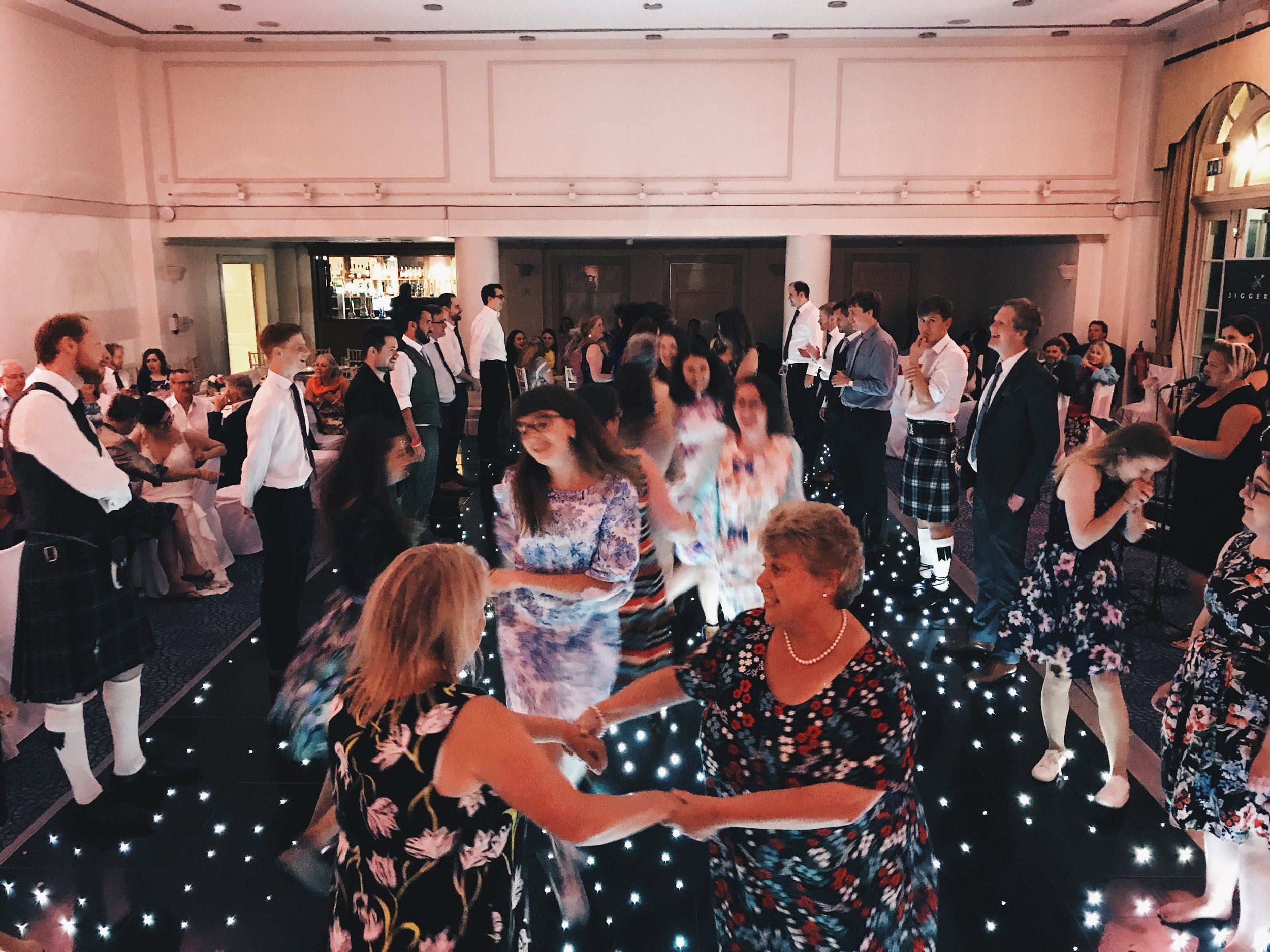 On this occasion the bride and groom have selected “Dream a little dream of me” as their first dance as a married couple. Josh and Kathryn were gliding across the dancefloor almost before the first notes of our introduction begun. By the end of the song, other members of the bridal party had been roped in and this was just the beginning of an entire evening of enthusiastic floor-filled action.