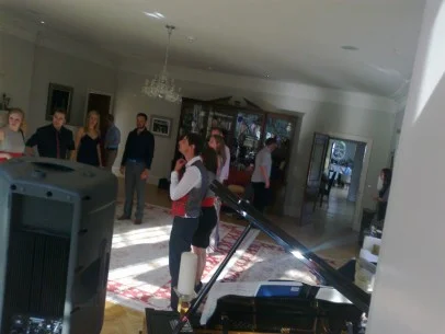 It’s been a while since Jiggered Ceilidh Band ventured over to Edinburgh and this was one trip that was definitely worth it! Jeremy hired us to play at his girlfriend Fiona’s 30th birthday party and it was going to be in her parents’ living room!! The house was beautiful set in lovely gardens and the perfect location to gather their friends and family for a double celebration…Jeremy proposed to Fiona and she said “yes”. Awwwww.